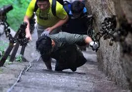وصل رجل صيني - فقد ساقيه عندما كان في سن المراهقة - إلى قمة ممر جيانمين في مقاطعة سيتشوان في جنوب غربي البلاد أمس الجمعة، باستخدام يديه فقط، حسبما ذكرت وسائل الإعلام الصينية الرسمية. وقطع تشن تشو البالغ من العمر 31 سنة، مسافة 2080 مترا على ممر جبلي ضيق، وشق طريقه لمسافة 400 متر إلى الممر الجبلي التاريخي على جبل داجيان حسبما أفاد تلفزيون الصين المركزي (سي سي تي في). وقال التلفزيون إن ممر جيانمين يشتهر بمنحدراته الشديدة وتصل درجة الانحدار مع بعض أجزائه إلى 90 درجة تقريبا. وكان تشن فقد ساقيه عندما كان عمره 13 سنة في حادث قطار. ويبلغ وزن تشن نحو 55 كيلوغراما ويتمتع بقوة هائلة في الجزء العلوي من الجسم. وذكر التلفزيون الصيني أنه أول شخص يحقق هذا الإنجاز باستخدام يديه فقط.