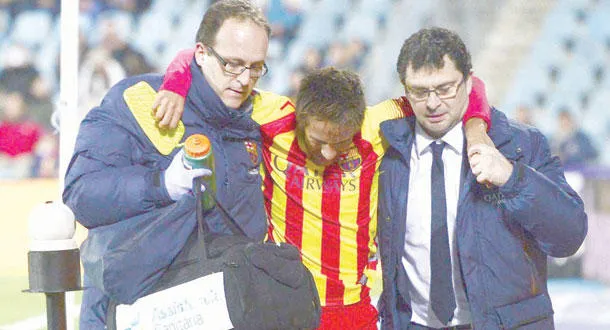 سيفتقد برشلونة خدمات نجمه البرازيلي نيمار بين ثلاثة وأربعة أسابيع بعد تعرضه لالتواء في كاحله أول من أمس (الخميس) ضد خيتافي (2 - صفر) في إياب الدور ثمن النهائي من مسابقة كأس إسبانيا. وذكر برشلونة أن الفحوصات التي أجريت صباح أمس (الجمعة) أكدت أن اللاعب يعاني من التواء في أوتار كاحله الأيمن وهو يحتاج بين ثلاثة وأربعة أسابيع للتعافي. وكان نيمار يخوض مباراته الأولى كأساسي منذ منتصف ديسمبر (كانون الأول) الماضي، لكنه لم ينعم بها كثيرا، إذ تعرض للإصابة في الدقيقة 23 حين كان يحاول لعب كرة عرضية من الجهة اليسرى. وكان هناك تخوف من أن يكون نيمار قد تعرض لتمزق في الأوتار وخبر غيابه عن الملاعب لنحو شهر فقط سيريح الجمهور الكتالوني لأن فريقه يخوض مباريات سهلة نسبيا في الأسابيع القليلة المقبلة، وهو سيتمكن من استعادة لاعب سانتوس السابق قبل حلوله ضيفا على مانشستر سيتي الإنجليزي في 18 من الشهر المقبل في ذهاب الدور الثاني من مسابقة دوري أبطال أوروبا.