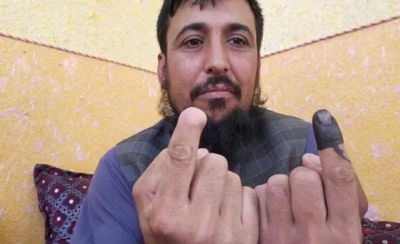 قطعت حركة «طالبان» الإصبع السبابة لناخب أفغاني يدعى صفي الله صفي لأنه أدلى بصوته عام 2014 إلا أن هذا لم يمنعه من التصويت مرة أخرى اليوم (السبت).