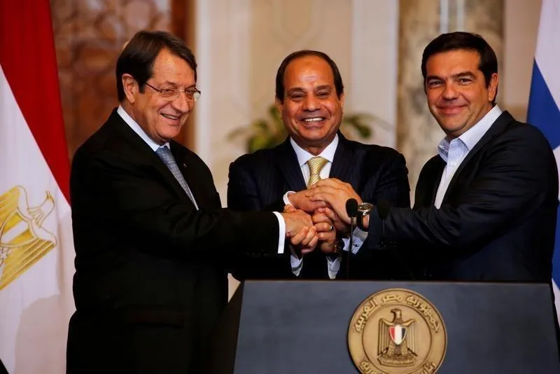 وصدر البيان المشترك بعد اجتماع رئيس وزراء اليونان كيرياكوس ميتسوتاكيس ورئيس وزراء قبرص نيكوس أناستاسياديس مع الرئيس المصري عبد الفتاح السيسي في القاهرة.