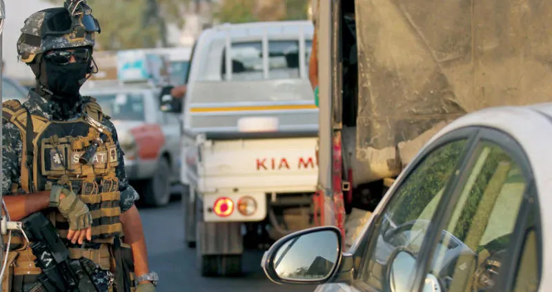 شرطي عراقي خلال دورية في بغداد أول من أمس (أ.ف.ب)