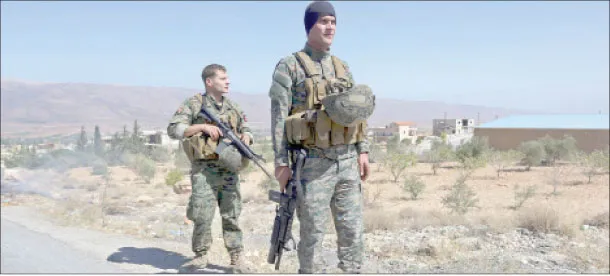 عنصران من الجيش اللبناني يقومان بالحراسة قرب قرية حدودية (أ.ب)