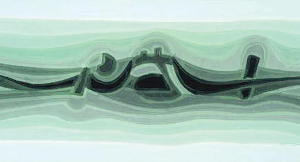ومن اللوحات التي تحتفي بالأماكن والأشخاص وتهتم بإبراز التراث كهوية، ننتقل إلى لوحات اتخذت من التجريدية وسيلة للتعبير، نرى ذلك في لوحة الفنان محمد السليم «من دون عنوان»، ويقدم لنا فيها منظرا يبدو لكثبان رملية متتالية تمتد على الأفق، تتوازى وتختلط حدودها مستعينة في ذلك بلوحة ألوان هادئة. خلال عقد الثمانينات، برز السليم بصفته واحدا من أهم الفنانين التجريديين بين أبناء جيله، ومن رواد الفن في منطقة الخليج. وفي أعقاب حرب الخليج، اتجه إلى استحضار واستخدام الأشكال الهندسية والألوان النقية في لوحاته وأعماله الفنية.