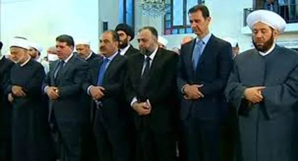وبث التلفزيون السوري صورا للأسد وهو يدخل الجامع الواقع على أطراف العاصمة السورية، حيث أدّى الصلاة برفقة مفتي سوريا أحمد بدر الدين حسون، ورئيس مجلس الشعب محمد جهاد اللحام، ورئيس مجلس الوزراء وائل الحلقي، والأمين القطري المساعد لحزب البعث الحاكم هلال الهلال، ومحافظ دمشق بشر الصبان، وعدد من رجال الدين، ومواطنين.