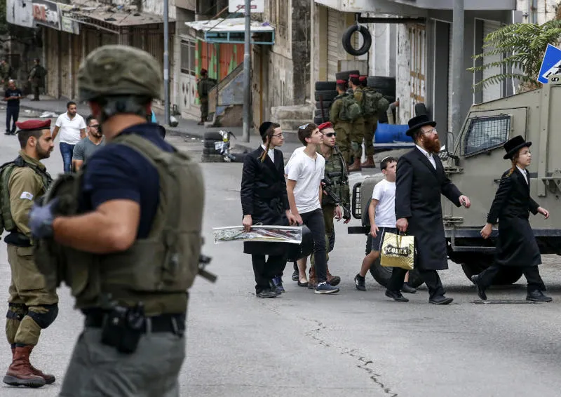 مستوطنون وأفراد من قوات الأمن الإسرائيلية في الضفة الغربية (أ.ف.ب)