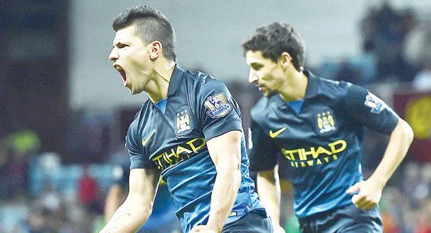 أغويرو يحتفل بالهدف الثاني في شباك أستون فيلا (أ.ف.ب)