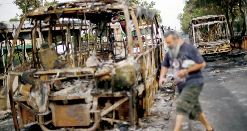 16 حافلة على الأقل أحرقت ليلة أول من أمس ودمرت بالكامل نحو 10 محطات للمترو (رويترز)