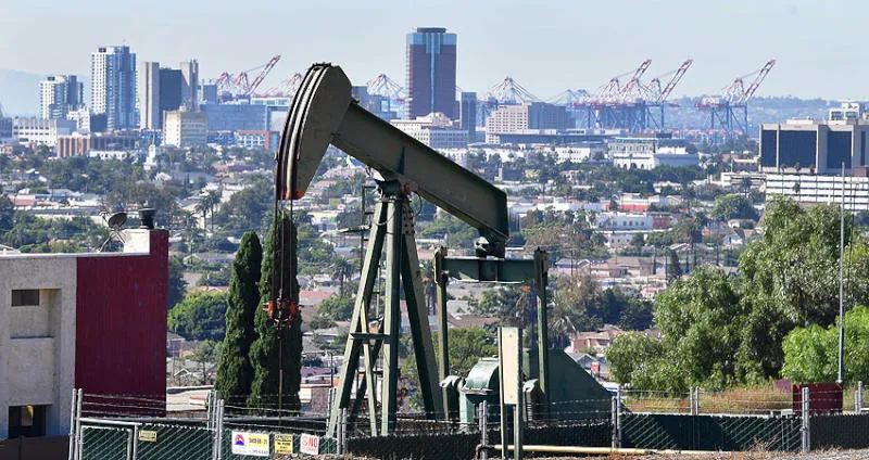 حفار نفطي بجانب ميناء لونغ بيتش في كاليفورنيا (أ.ف.ب)