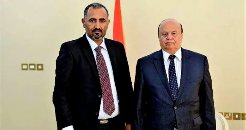 ارشيفية للرئيس اليمني عبد ربه منصور هادي و رئيس المجلس الانتقالي الجنوبي عيدروس قاسم الزُبيدي.