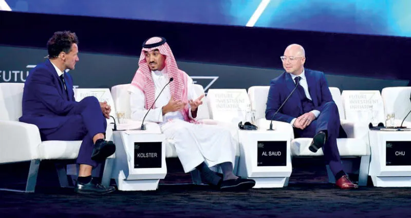 الأمير عبد العزيز الفيصل خلال حديثه في «مبادرة الاستثمار 2019» بالعاصمة الرياض أمس (الشرق الأوسط)