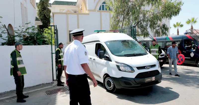 المتهمون بقتل السائحتين الاسكندنافيتين مغادرين قاعة محكمة سلا بالقرب من الرباط عقب تأييد أحكام الإعدام ضدهم أول من أمس (رويترز)