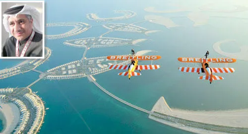 لقطة جوية من خلال استعراض لطائرات بريتلينغ خلال معرض البحرين (أ.ب) وفي الاطار كمال بن أحمد