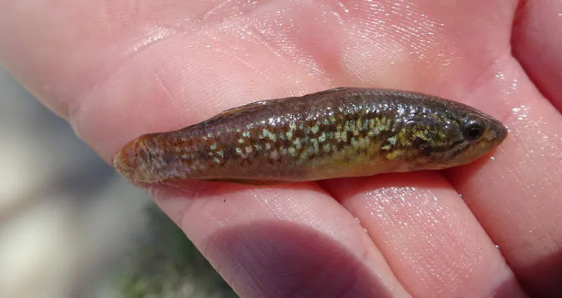صورة وزعتها وزارة البيئة الأسترالية لسمكة غودغين البنفسجية المنقطة خلال مشروع تنظيف بحيرة شمال غربي ولاية فيكتوريا. وهي سمكة نادرة للغاية كان يعتقد أنها اختفت تماما في فيكتوريا ولم تشاهد منذ أكثر من عقدين من الزمن (إ.ب.أ)