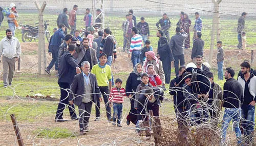وتحتشد مجموعة من اللاجئين أمام الحاجز الذي يدل إلى الحدود في أسفل واد. وتحاصر «الدولة الإسلامية في العراق والشام» منذ بضعة أيام قرية عفرين، وبدأت تتناقص فيها المواد الغذائية والمحروقات.