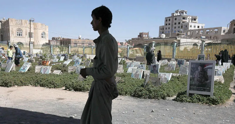 يمني يمر بجانب مقبرة في صنعاء (إ.ب.أ)