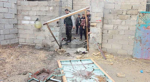 عائلة عراقية تتفحص بيتها الذي تعرض للقصف العشوائي بنيران الجيش العراقي في مدينة الفلوجة أمس (أ.ف.ب)