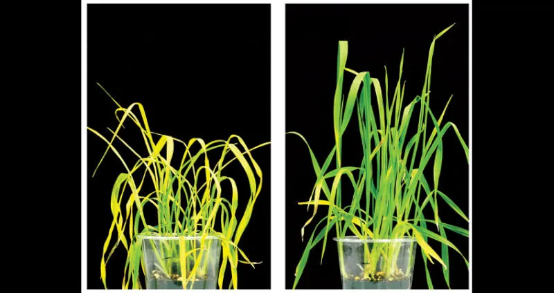مقارنة بين نبات تمت معاملته بالمادة (يمين) وآخر لم تتم معاملته