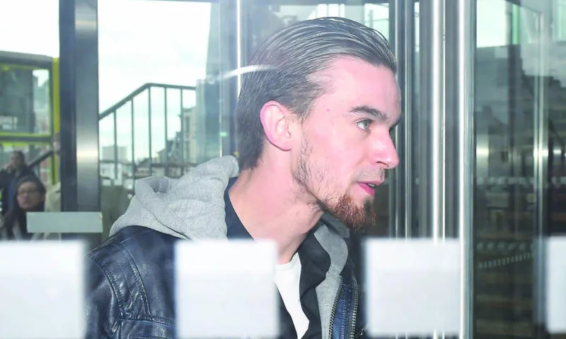 مايكل ديل فورتي لدى وصوله إلى قاعة محكمة أنتويرب (أ.ف.ب)