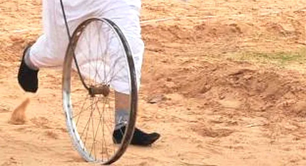 أحد الأطفال يمارس إحدى الألعاب الشعبية القديمة في السعودية (واس)