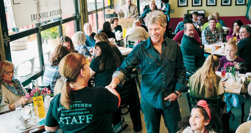 قبل ثماني سنوات شارك المغني الشهير جون بون جوفي بمشروع غير ربحي غير حياة الكثيرين للأفضل، وكان المشروع مطعما يقدم وجبات معدة باستخدام منتجات طبيعية من المزرعة ويخصص للمحتاجين أولا. أوردت محطة سي بي إس الأميركية تقريرا عن المطعم وعن الدروس التي يمكن للمشاهير وعامة الناس تعلمها من هذا المشروع الناجح. يقع المطعم والذي أطلق عليه بون جوفي وزوجته اسم «جيه بي جيه سول كيتشنز»، في مدينة ريد بانك في نيوجيرسي الأميركية.