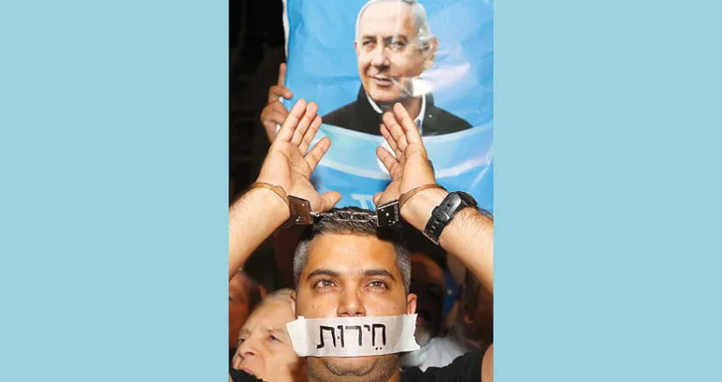 كان الآلاف من الإسرائيليين قد شاركوا، أول من أمس (الثلاثاء)، في مظاهرة داعمة لنتنياهو المحاصَر بالأزمات والذي يناضل من أجل بقائه السياسي، بعدما قرر الادعاء العام توجيه اتهامات إليه بالرشوة والاحتيال وخيانة الأمانة. وأفاد العديد من الصحافيين الذين شاركوا في تغطية الفعالية بتعرضهم للسباب والضرب والبصق من جانب مشاركين في التجمع الحاشد.