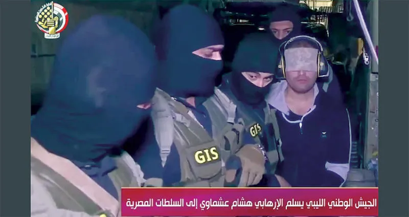 وعرض الفيديو، الليلة قبل الماضية، لقطات من «العمليات الإرهابية المتورط فيها عشماوي». وذكر الفيديو أن «عشماوي قد اعتقلته قوات الجيش الوطني الليبي في أكتوبر (تشرين الأول)، عام 2018، في درنة، شرق ليبيا»... كما عرض الفيديو لقطات تسلّم السلطات المصرية لعشماوي.