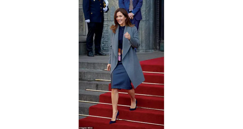 وبعد انتهاء الحفل اعتمدت الأميرة ماري معطفاً بتصميم كلاسيكي، مع ياقة «الشلال» البارزة، باللون الرمادي. المعطف من تشكيلة العلامة التجارية «ماسيمو دوتي» التي تعد من العلامات ذات الأسعار المعقولة، صحيح أن هذا المعطف غير متوفر للشراء الآن لكن متوسط سعره لم يتخطِ 350 دولاراً. يمكنكِ شراء معطف رمادي بتفاصيل قريبة وبأقل سعر متاح من موقع التسوق الإلكتروني «سيلك فريد» silkfred بسعر 34 دولاراً فقط.