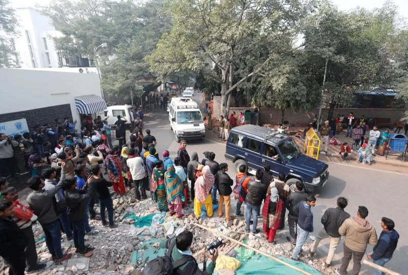 عربة إسعاف تحمل ضحية الاغتصاب في نيودلهي (رويترز)