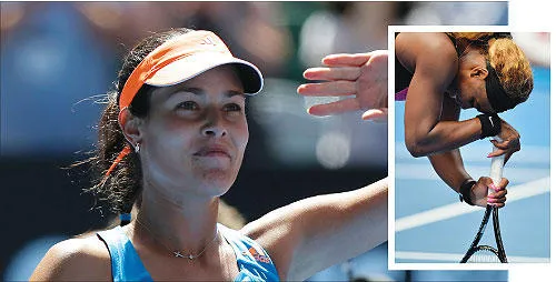 سيرينا تنكس رأسها ومضربها بعد الهزيمة (إ.ب.أ) و إيفانوفيتش تحيي الجماهير بعد فوزها على سيرينا (إ.ب.أ)