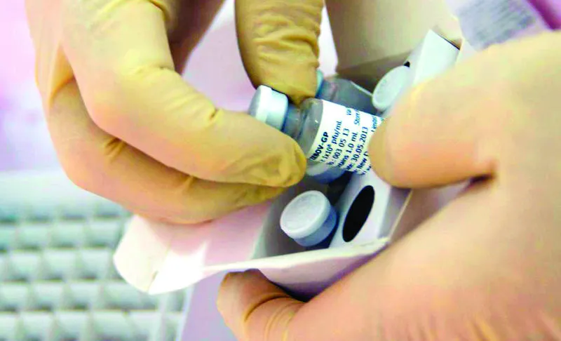 صورة وزعت أمس لعالم في مختبر علمي بمدينة وينينغ الكندية يعد لتجربة لقاح مضاد لفيروس إيبولا قبل شحنه إلى منظمة الصحة العالمية في جنيف (رويترز)