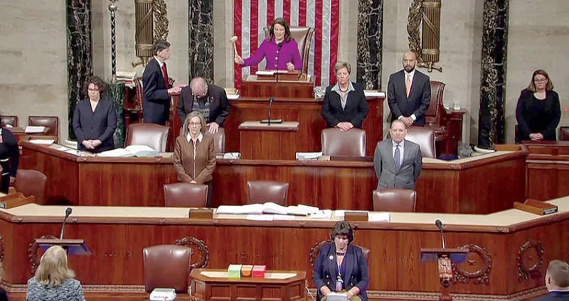 جانب من جلسة مجلس النواب قبل التصويت على التهم الموجهة إلى ترمب أمس (رويترز)