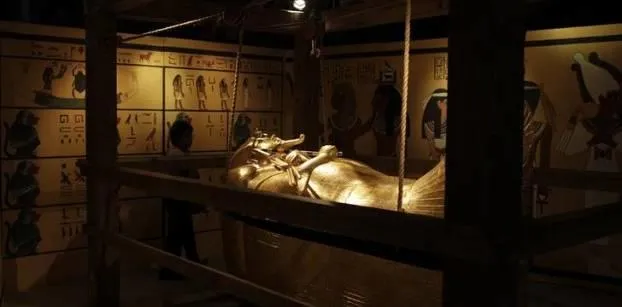 نقوش هيروغليفية على مقبرة توت عنخ آمون الأصلية (أرشيفية - رويترز)