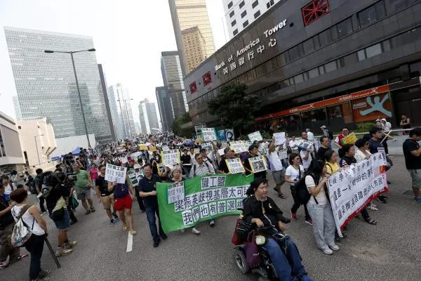 وقال وينغ تشان الذي شارك في المسيرة "أنا هنا يحدوني الأمل أن تنصت لنا الحكومة. إذا لم تستمع لنا فسنستمر في النزول إلى الشارع لنكافح من أجل حق أساسي أن تختار القاعدة العريضة من الشعب المرشحين".