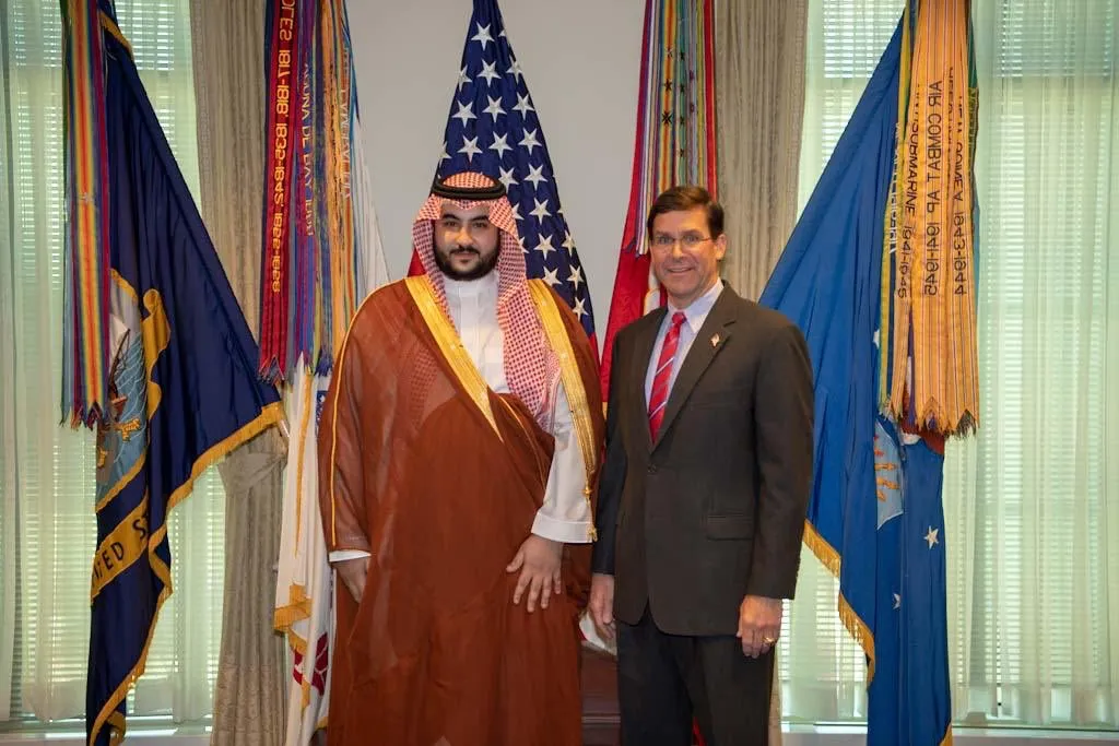 نائب وزير الدفاع السعودي الأمير خالد بن سلمان خلال لقاء سابق بوزير الدفاع الأميركي مارك إسبر