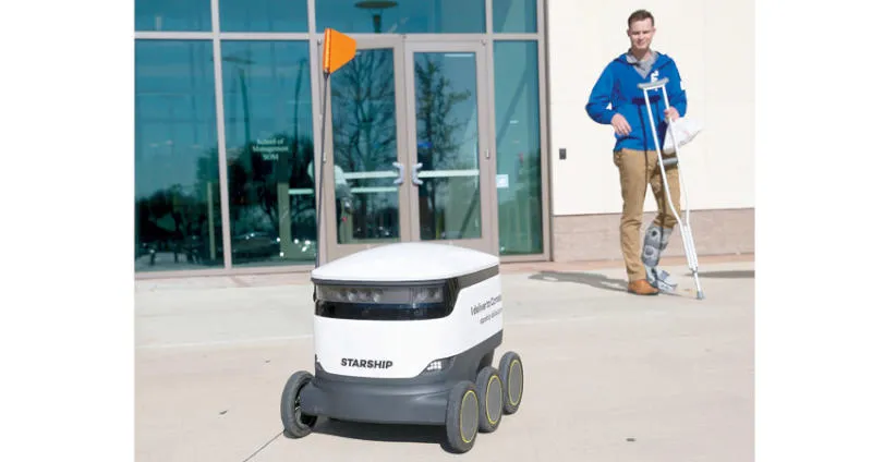 وظّفت جامعة تكساس - دالاس أسطولاً من الربوتات المخصّصة لتوصيل وجبات الطعام من إنتاج شركة «ستارشيب». وتشغّل الشركة المتمركزة في سان فرنسيسكو روبوتات في سبع جامعات منها تكساس - دالاس وهيوستن. وكانت روبوتاتها قد ظهرت للمرّة الأولى في جامعة جورج ماسون في مقاطعة فيرفاكس، في فبراير (شباط) الماضي.