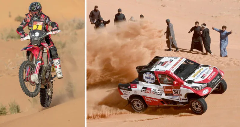 وقال بيرهانسل حامل الرقم القياسي في داكار مع 13 لقبا (سبعة في السيارات وستة في الدراجات النارية) «اليوم كانت مرحلة طويلة كانت سريعة لكن في بعض الأحيان كان علينا تخطي الكثبان الرملية».