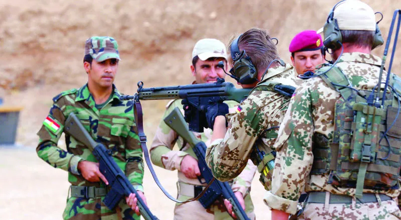 خبير من الجيش الألماني يدرب في أربيل قوات البيشمركة على استخدام سلاح حديث (أ.ف.ب)