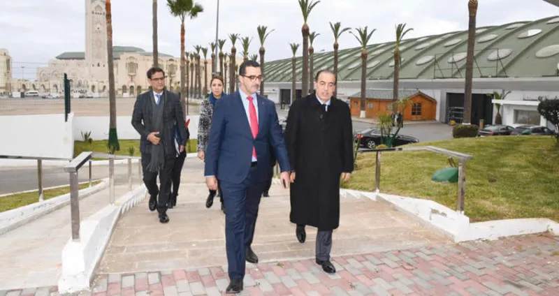 وزير الثقافة والشباب والرياضة المغربي الحسن عبيابة خلال زيارة تفقدية لفضاء مكتب أسواق ومعارض الدار البيضاء