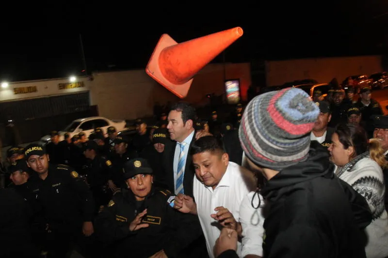 رئيس غواتيمالا المنتهية ولايته جيمي موراليس في حماية الشرطة (إ.ب.أ)
