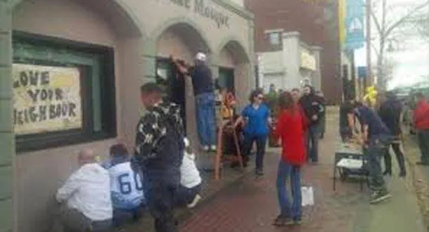 وكان البعض قد كتبوا على جدران المسجد برذاذ الطلاء الأحمر عبارة تقول: «اذهبوا إلى أوطانكم» وحطمت نوافذه. وبحلول ظهر الجمعة كان المتطوعون من المجتمع المحلي قد أزالوا تلك الكتابات وأصلحوا النوافذ ولصقوا ملصقاتهم.