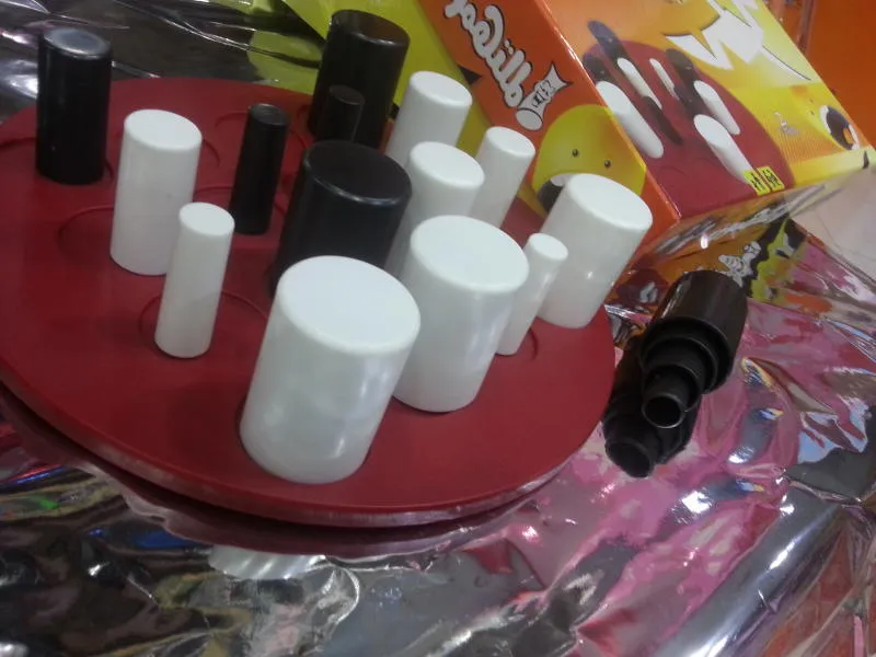 نبذة عن اللعبة: لعبة متطورة عن اللعبة الشهيرة «إكس أور أو»، تتكون من ست اسطوانات كبيرة كل ثلاث اسطوانات مكونة من لون واحد، وكل اسطوانة كبيرة داخلها أربع مرتبة من الأكبر إلى الأصغر ومتداخلة في بعضها، ولوح مربع مكون من ست عشرة دائرة، متراتبة وموزعة على أربعة صفوف كل صف مكون من أربع دوائر.