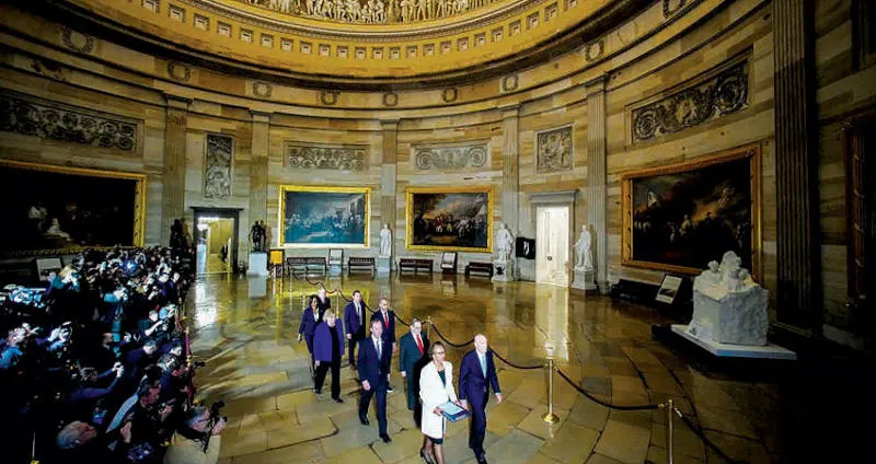 ديمقراطيون يحملون بنود الاتهام إلى مجلس الشيوخ الأربعاء الماضي (رويترز)