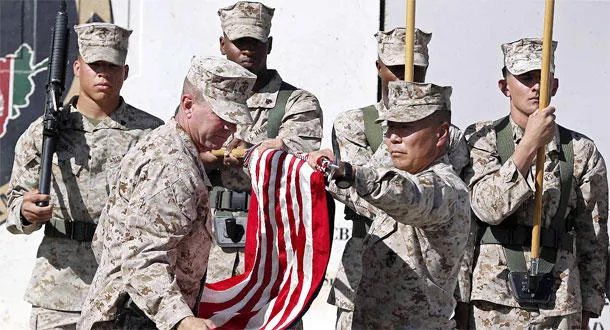 وأنزلت الاعلام الاميركية والبريطانية وأزيلت اليوم للمرة الاخيرة في المقر الاقليمي للقوات الدولية بعد 13 عاما من الاطاحة بنظام حكم حركة طالبان في أفغانستان، في أطول حرب خاضتها الولايات المتحدة.