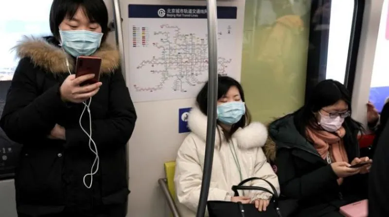 صينيون يضعون كمامات في مترو الأنفاق ببكين تخوفاً من الإصابة بالفيروس الجديد (رويترز)