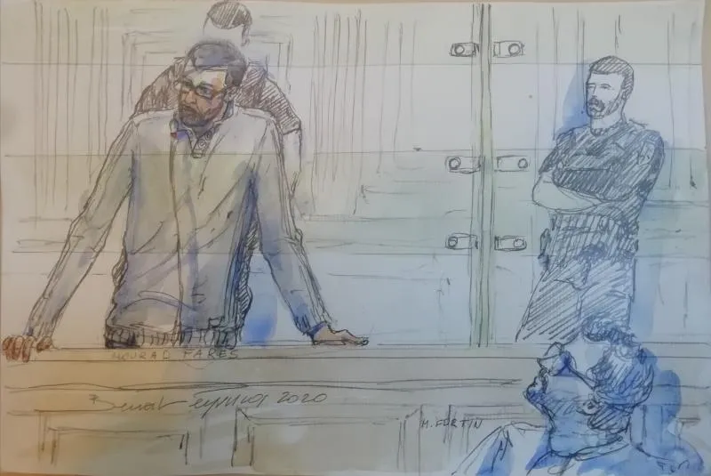 رسم يظهر مراد فارس واقفاً في المحكمة (أ.ف.ب)