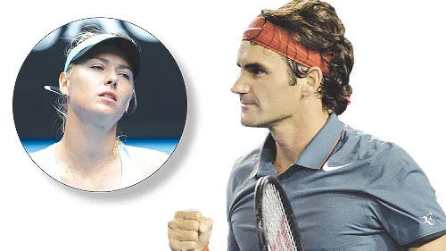 فيدرر يحتفل بفوزه على تسونغا (إ.ب.أ) و الهزيمة على ملامح شارابوفا (إ.ب.أ)