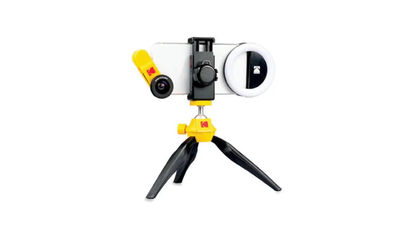 تقدّم لكم مجموعة التصوير الفوتوغرافي الجديدة والخاصّة بالهواتف الذكية من «كوداك» خيارات رائعة من الإكسسوارات لمساعدتكم في زيادة فاعلية ومتعة التصوير بواسطة هاتفكم وبنتائج أفضل. تأتي هذه المجموعة متعدّدة الأهداف مرتّبة في صندوق متين مجهّز للسفر، وتضمّ عدسة «اثنين في واحد» بزاوية شديدة الاتساع، إلى جانب منصّة ثلاثية الأرجل، وجهاز للتحكّم بالمصراع عن بُعد، وضوء خاص لصور البورتريه.