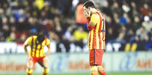 الأرجنتيني ميسي مهاجم برشلونة يبدو حزينا بعد التعادل أمام ليفانتي (أ.ف.ب)