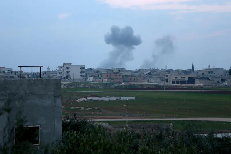 دخان يتصاعد خلال المعارك في إدلب (إ.ب.أ)