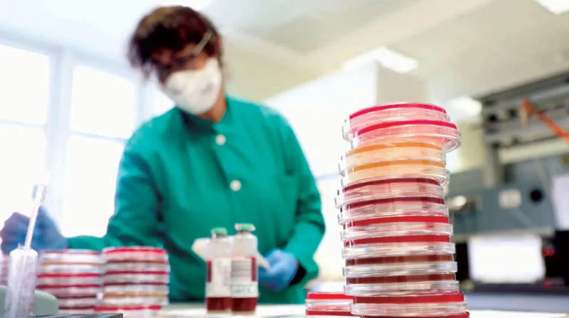 باحث داخل معمل للأحياء الدقيقة وعلوم الفيروسات في ميلانو بإيطاليا (إ.ب.أ)